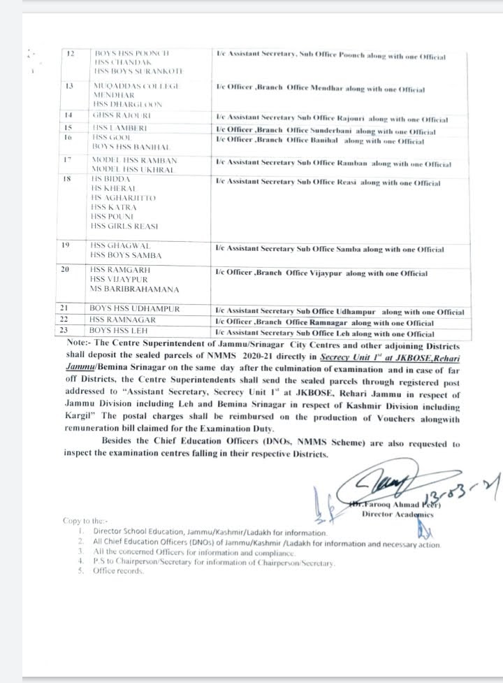 Monitaring teams for smooth cunduct of National Meam Cun Merit Scholarship (NMMS) Examination 2000-21 scheduled on 15.03.2021.