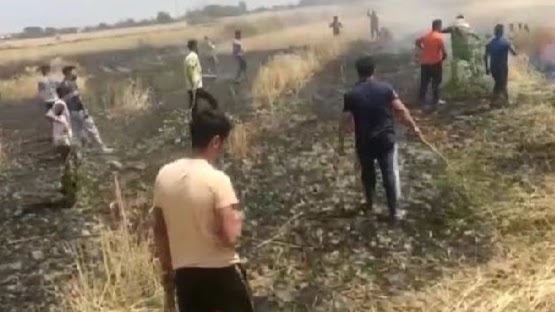 बिशनाह क्षेत्र के गांव खोजीपुर मैं गेंहू की फसल को लगी आग हजारों रुपए की फसल बर्बाद।
